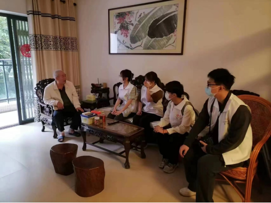 經(jīng)過(guò)報名、面試、培訓,最終國教院青紅組織6組24名志愿者參與此次活動(dòng)。志愿者吳煒彬回憶道,他們跟隨引導員來(lái)到一位低保老人家中進(jìn)行探訪(fǎng)。這是一對年邁的夫妻,兩位老人和藹熱情,一進(jìn)門(mén)便邀請他們入座。在老人家的介紹中,他們了解到兩位老人家的生活境況——兒女長(cháng)期在外務(wù)工,無(wú)暇照顧,老人在家自顧營(yíng)生,平日偶爾出門(mén)歇腳,生活平淡且安靜……空巢老人需要更多的社會(huì )關(guān)懷與援助,他們缺乏陪伴,面對生活問(wèn)題常常求解無(wú)方。在此次活動(dòng)中,作為青年志愿者的我們雖然只是進(jìn)行短時(shí)的探訪(fǎng),卻為老人帶去了關(guān)懷與陪伴,傾聽(tīng)他們的心聲與故事,幫助老人化解了心中的孤獨。