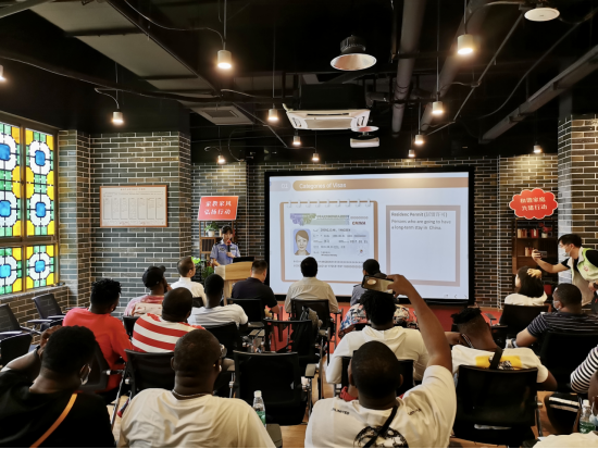 (廣州市出入境管理大隊邱雅雯警官為我校留學(xué)生講解簽證相關(guān)規定)