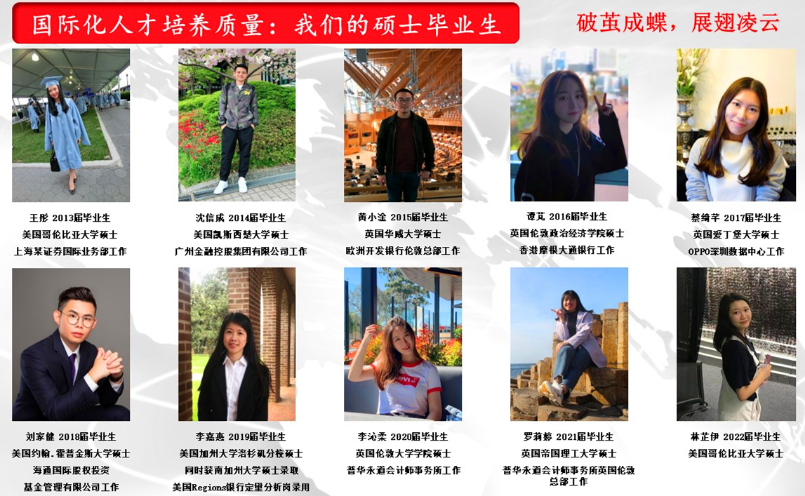 研究生錄取學(xué)校:英國倫敦大學(xué)國王學(xué)院、澳洲墨爾本大學(xué)、香港科技大學(xué)(目前在畢馬威會(huì )計師事務(wù)所廣州分所工作)