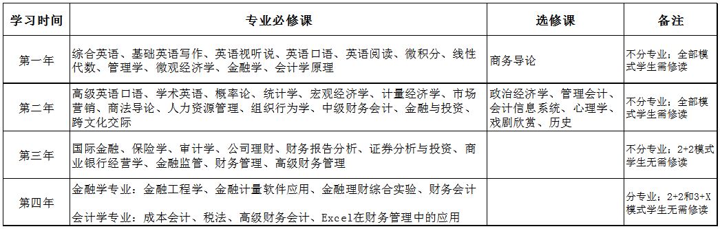 金融學(xué)和會(huì )計學(xué)專(zhuān)業(yè)采用中外聯(lián)合培養人才培養模式,可選以下培養模式: