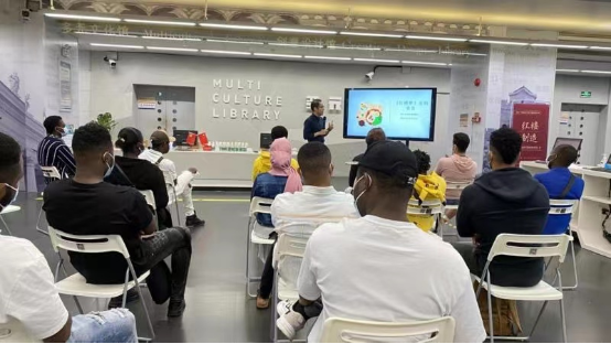 (我校對外漢語(yǔ)教師董越在廣州圖書(shū)館來(lái)華留學(xué)生和外籍人士舉辦公益對外漢語(yǔ)課堂)