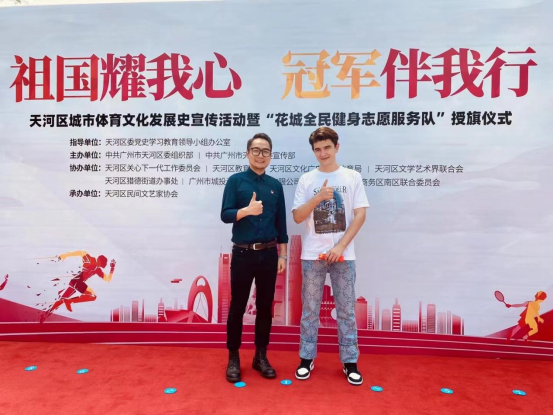 (我校烏茲別克斯坦來(lái)華留學(xué)生KHUJAEV SAIDMUKHAMMADALOKHON受廣州市天河區民間文藝家協(xié)會(huì )邀請,作為優(yōu)秀外籍學(xué)生代表參加“祖國耀我心,冠軍伴我行”全民健身,奧運冠軍面對面活動(dòng))