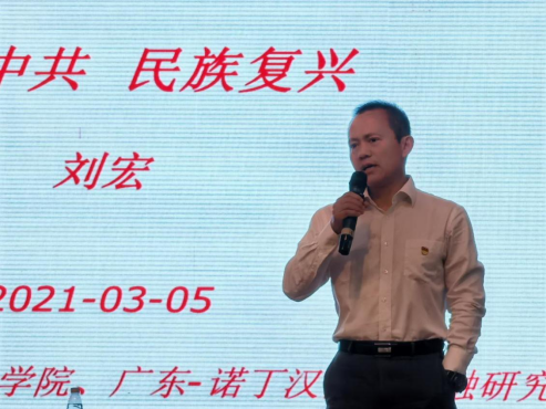 隨后,劉宏書(shū)記圍繞“中共百年,民族復興”主題跟同學(xué)們進(jìn)行了講授和溝通。劉宏書(shū)記首先通過(guò)講述中國共產(chǎn)黨的百年奮進(jìn)歷程,引導同學(xué)們深刻理解“中國共產(chǎn)黨為什么能”、“馬克思主義為什么行”、“中國特色社會(huì )主義為什么好”三個(gè)根本問(wèn)題,結合銀河galaxy集團教學(xué)特色和專(zhuān)業(yè)優(yōu)勢,啟示同學(xué)們即使將來(lái)身處國外,也要堅定文化自信,對外講好中國故事,傳承優(yōu)秀中華文化傳統,以廣金學(xué)子的身份肩負起中國特色社會(huì )主義現代化建設事業(yè)的重擔。