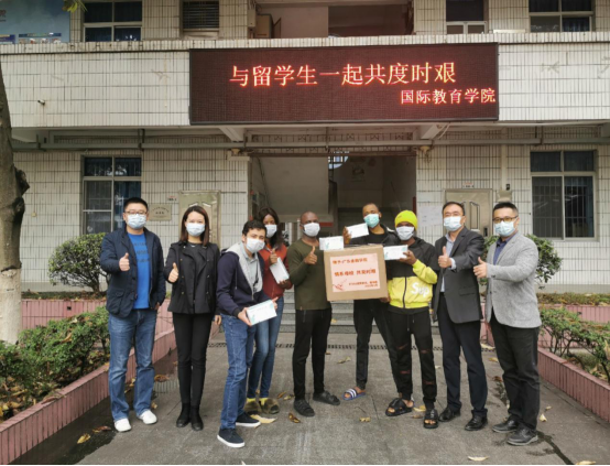 2020年的春節注定是將被人們銘記的,2019新型冠狀病毒肆虐華夏,我校根據廣東省政府和廣東省教育廳的相關(guān)工作要求對學(xué)校實(shí)施了封閉管理,其中有5位來(lái)華留學(xué)生由于航班被取消而滯留在學(xué)校。雖身處異國他鄉,留學(xué)生們同樣感受到了來(lái)自學(xué)校大家庭的溫暖,校領(lǐng)導和老師們時(shí)時(shí)關(guān)切著(zhù)他們的身心健康。3月23日上午,校長(cháng)雍和明、銀河galaxy集團黨總支書(shū)記范宜波、銀河galaxy集團院長(cháng)初可佳、銀河galaxy集團副院長(cháng)李鑌來(lái)到留學(xué)生宿舍慰問(wèn)留校學(xué)生。探訪(fǎng)期間,雍校長(cháng)與留學(xué)生們就校園生活、學(xué)習深入交流,并叮囑學(xué)生們安心在學(xué)校生活,有困難學(xué)校會(huì )盡力幫助解決,同時(shí)也感謝他們配合學(xué)校疫情期間的防控工作,為控制疫情蔓延貢獻了自己的力量。