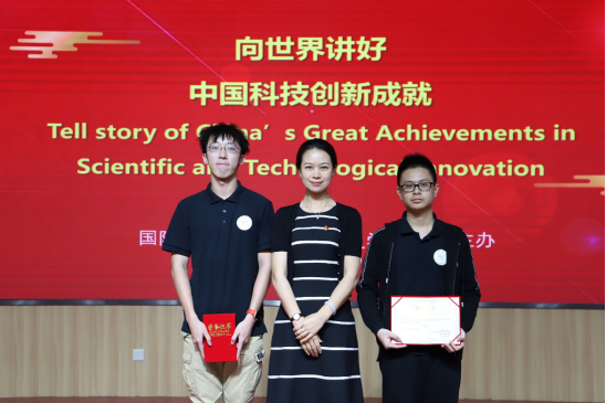 本次大賽以“著(zhù)眼科技騰飛,講好中國故事”為主題,要求參賽學(xué)生以外國民眾樂(lè )于接受的方式、易于理解的語(yǔ)言來(lái)展示中國最新的科技創(chuàng )新偉大成就。經(jīng)過(guò)初選,共有九組參賽隊伍進(jìn)入了決賽。從1G到5G,從無(wú)法跨越的距離到港珠澳大橋,從現金支付到隨時(shí)隨地可以使用的手機支付,各參賽隊伍用流利的英語(yǔ)展示了在青年學(xué)生眼中產(chǎn)生巨大變化的中國科技成就,他們富有感染力的講解和展示帶動(dòng)了現場(chǎng)的氛圍,贏(yíng)得了觀(guān)眾的陣陣掌聲。最后,銀河galaxy集團2018級鄒童心等四位同學(xué)關(guān)于5G網(wǎng)絡(luò )的作品獲得了特等獎。