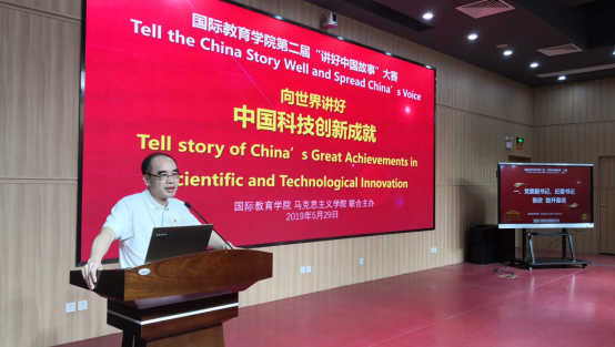 張欣在致辭中分享了出訪(fǎng)德國科技企業(yè)的學(xué)習經(jīng)歷,闡述了“講好中國故事”的必要性。他表示,講好中國故事,就是要主動(dòng)宣傳介紹習近平新時(shí)代中國特色社會(huì )主義思想,主動(dòng)講好中國故事,既要講好中國共產(chǎn)黨治國理政的宏偉事業(yè),也要講好中國人民奮斗圓夢(mèng)的點(diǎn)滴瞬間,還要講好中國堅持和平發(fā)展合作共贏(yíng)的理念。他強調舉辦講好中國故事大賽是對習近平總書(shū)記提出的“講好中國故事,傳播好中國聲音”的一個(gè)最行之有效的實(shí)踐,希望講好中國故事大賽能夠長(cháng)期舉辦下去,真正能夠通過(guò)故事大賽鍛煉講故事的能力和培育中國好故事。他勉勵學(xué)生們:作為未來(lái)的留學(xué)生,應該在新形勢下,擔當職責使命、錘煉能力本領(lǐng),充分利用中外雙校園的傳播平臺,代表學(xué)校,代表中國,用世界語(yǔ)言講中國故事,增強對外話(huà)語(yǔ)的創(chuàng )造力、感召力、公信力,找準國際社會(huì )需求,讓外國人聽(tīng)得懂、聽(tīng)得進(jìn)我們的故事,讓世界更好地了解中國,不斷提高國家的文化軟實(shí)力和中華文化影響力。